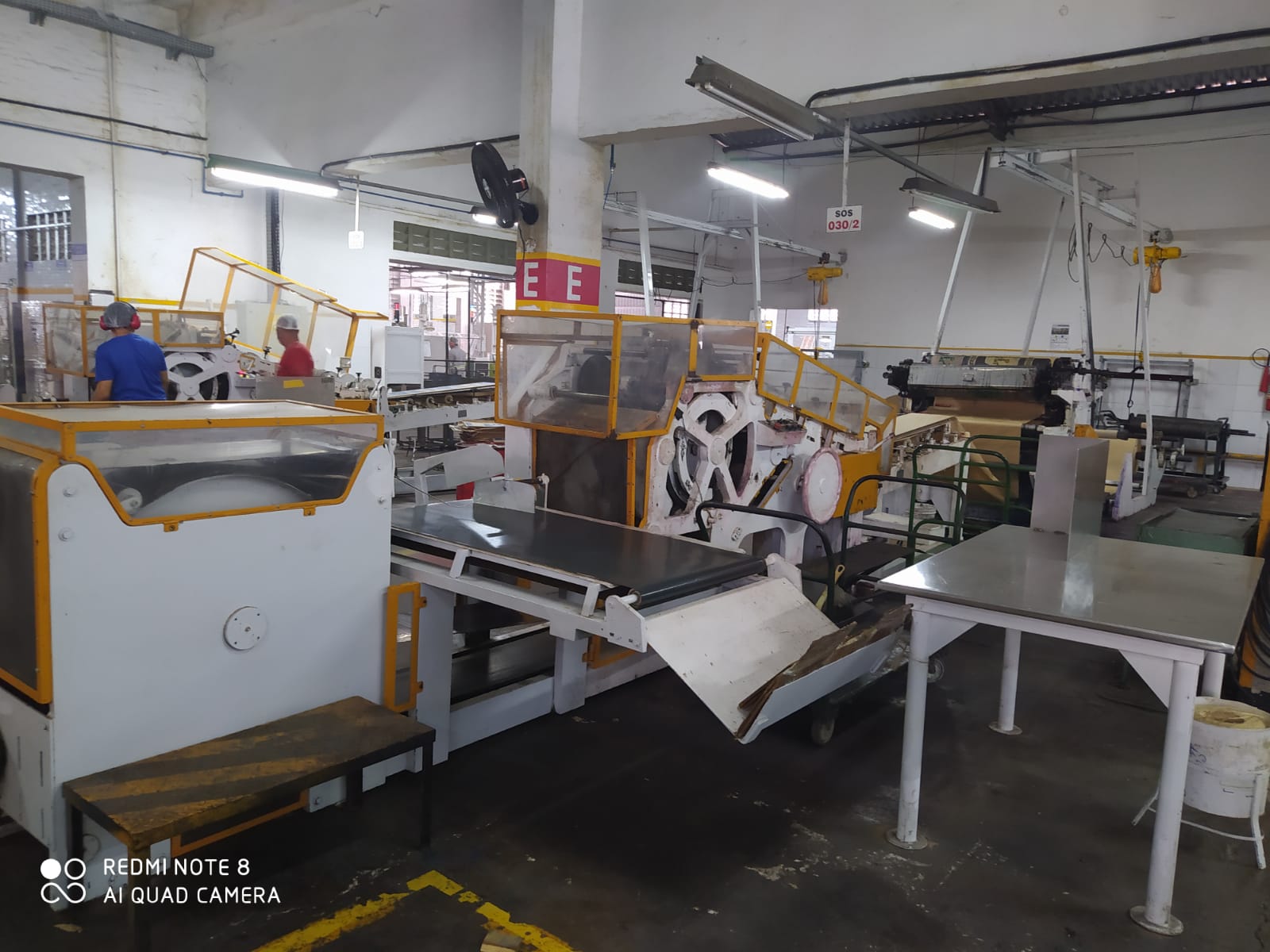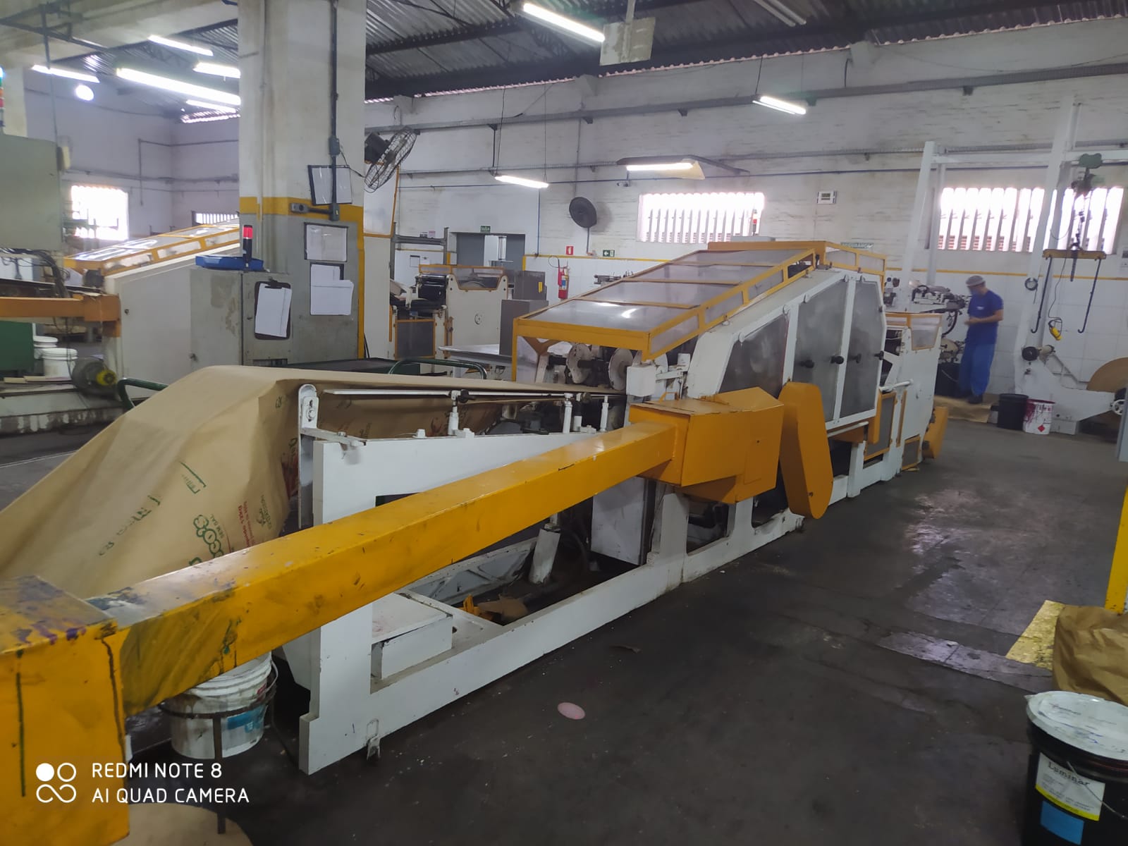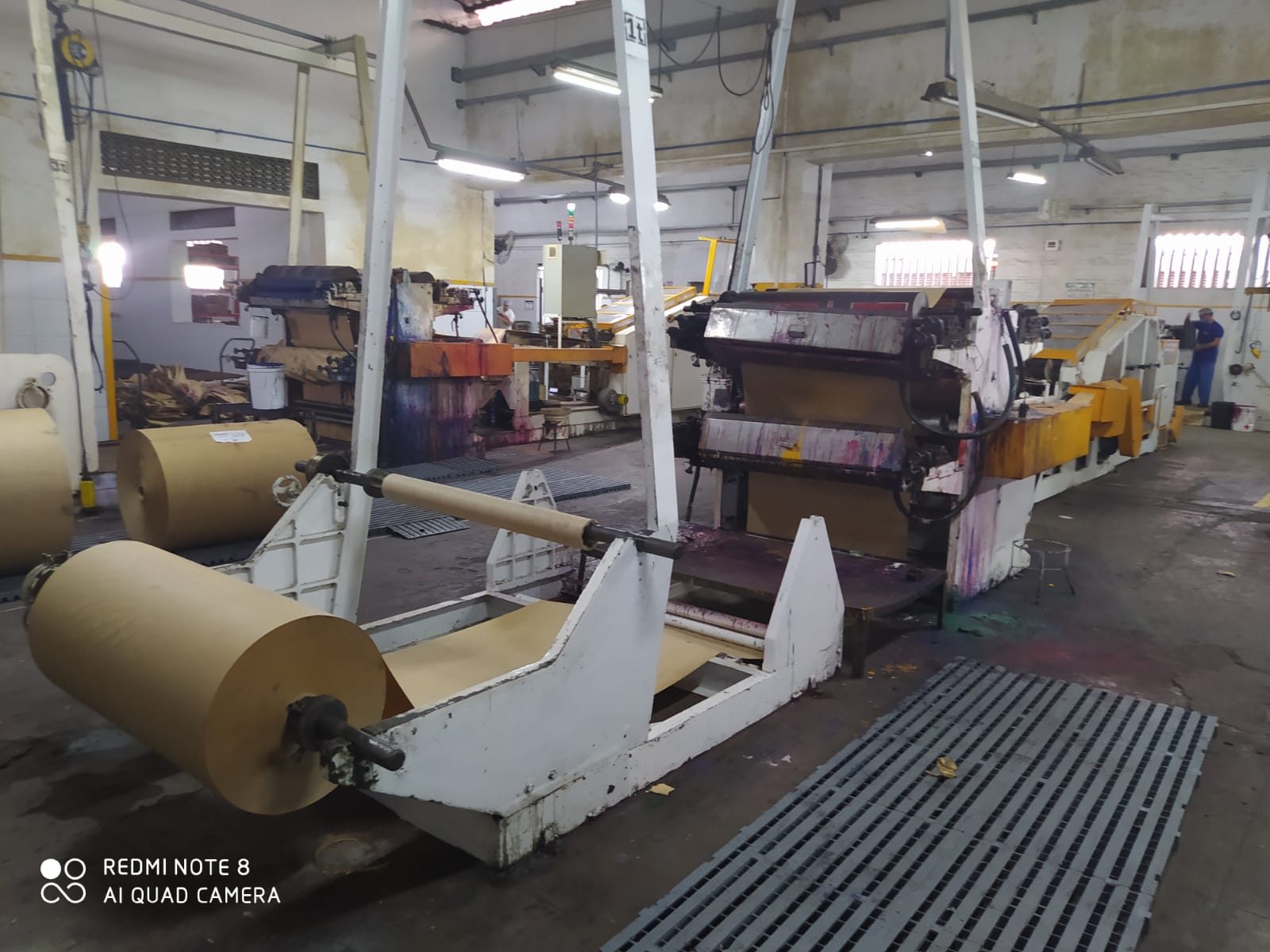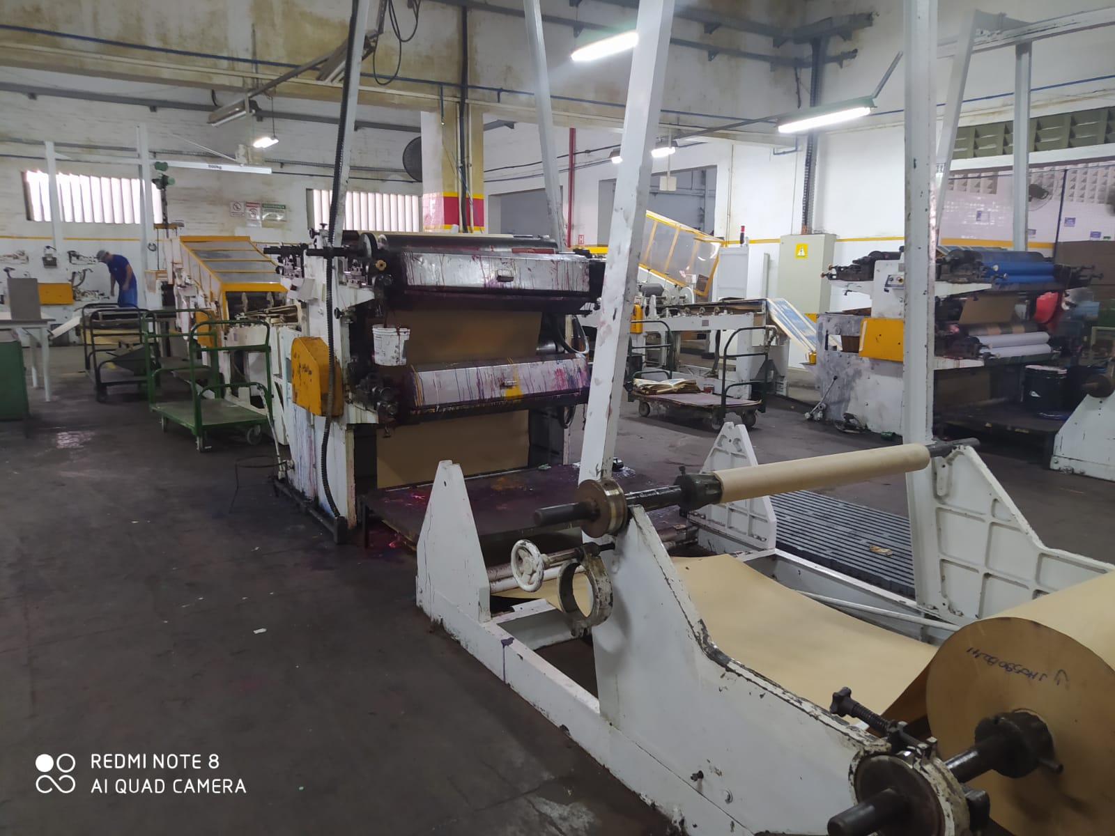 Produção de sacos de papel usada, marca Profama, modelo SOS 030, ano 90, 3 cores, para sacos de fundo quadrado, largura de chapa máxima 320 mm, comprimento máximo 880 mm. em produção.