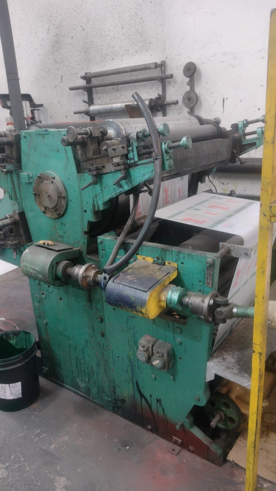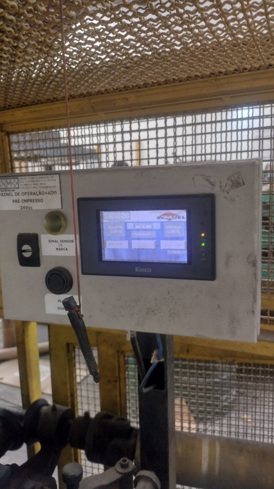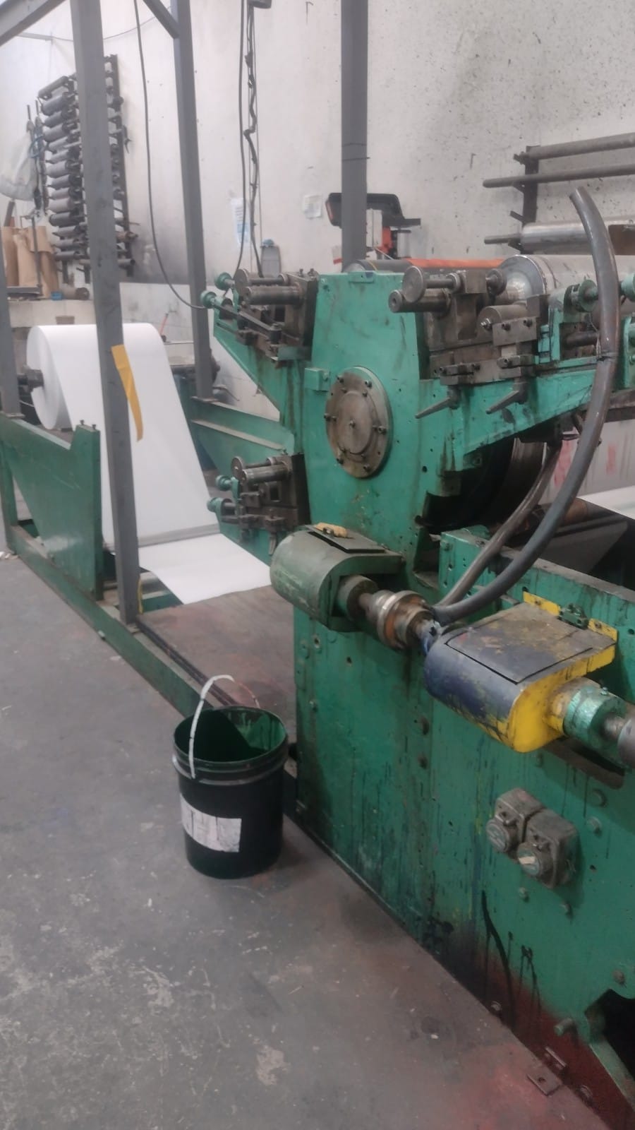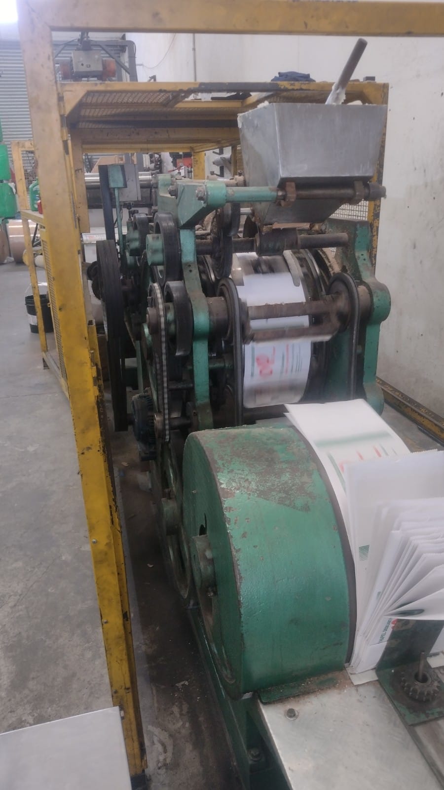 Produção de sacos de papel, marca Profama, modelo SOS 05, usada, anos 90, tambor central com fotocélula, 3 cores, para sacos de fundo reto, cilindros 52 e 48, jogo completo,
