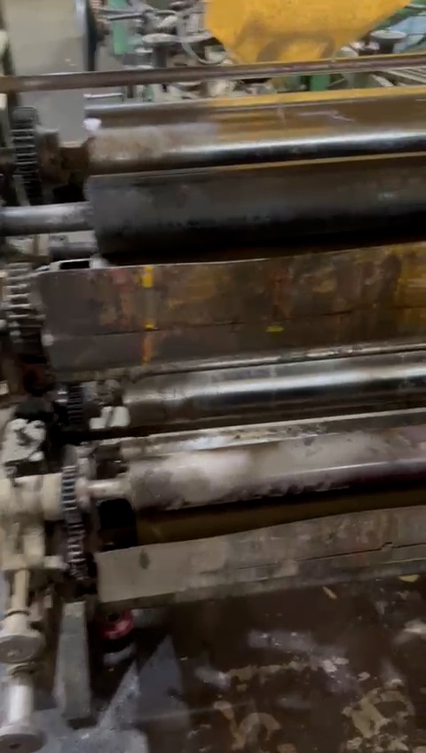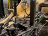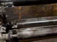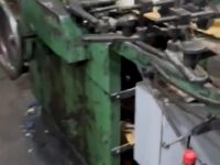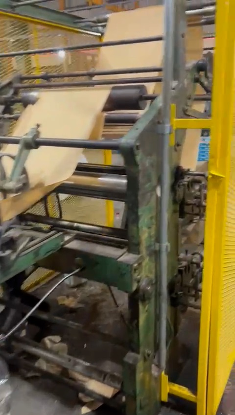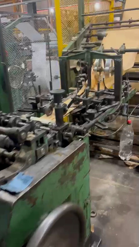 Produção de sacos de papel usada, marca São José, modelo MT2, anos 80, formato de sacos de 1 a 15 kg, fundo reto, 2 cores, em produção.