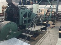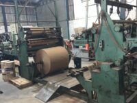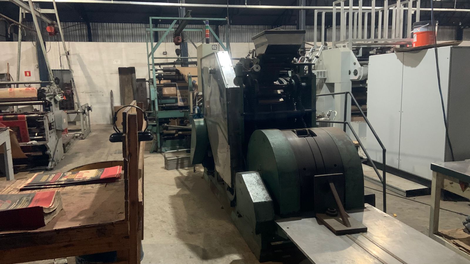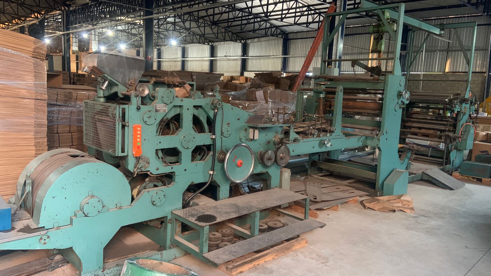 Fechadora de sacos de papel usada, marca Brasibérica, modelo SOS 020, formatos de sacos de fundo quadrado de até 40 cm largura e 64 cm de comprimento, até 3 cores.